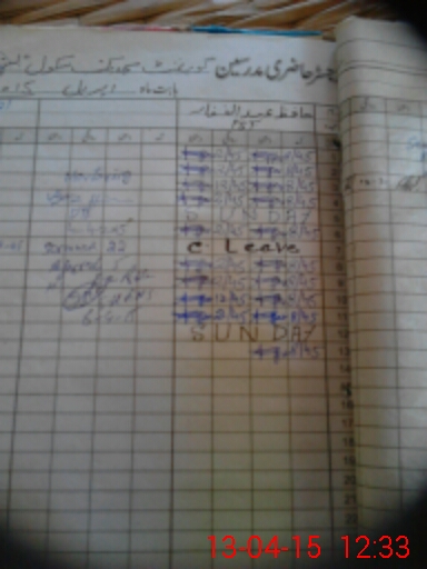 | CNIC | Full Name | Designation | R/C | Absence During Last Calender Month |