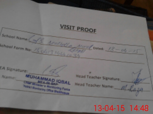 | EMIS Code: 35410694 | Name of School: GPS MOHALLA NOOR SHAH | |||