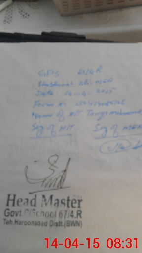 | Name: Sh**** Designation: (School Headmaster's/Headmistress's) PST Phone/Cell Number: 03**** |