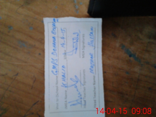 | School Visited by School Health & Nutrition Supervisor (No. of Visits) | 1 | Name1: | Mohammad Iqbal | Name2: | |