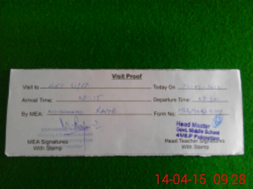 | Attendance Register | Head Teacher | MEA with School | Visit Proof |