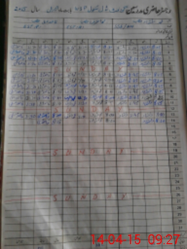 | CNIC | Full Name | Designation | R/C | Absence During Last Calender Month |