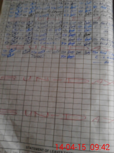 | CNIC | Full Name | Designation | R/C | Absence During Last Calender Month |