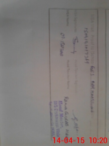 | Monitoring Date: 14-04-2015 | Start Time: 14-04-2015 09:48 AM | End Time: 14-04-2015 10:24 AM | Name of MEA: M.Is**** (S**** 03**** | |