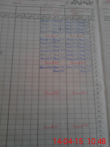 | CNIC | Full Name | Designation | R/C | Absence During Last Calender Month |