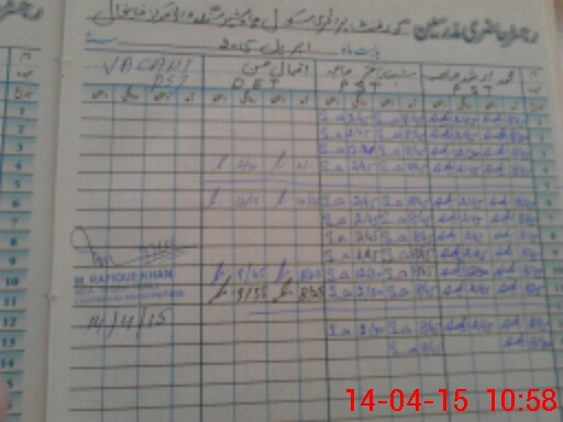 | CNIC | Full Name | Designation | R/C | Absence During Last Calender Month |