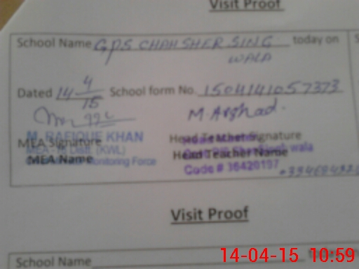 | Attendance Register | Head Teacher | MEA with School | Visit Proof |