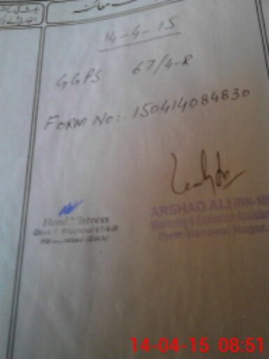 | Name: Dh**** Fa**** Designation: (School Headmaster's/Headmistress's) PST Phone/Cell Number: 03**** |
