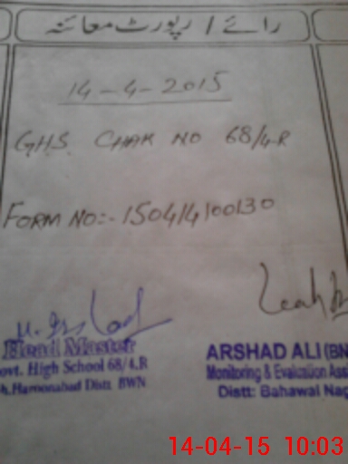 | EMIS Code: 31140009 | Name of School: GHS CHAK 68/4-R | |||