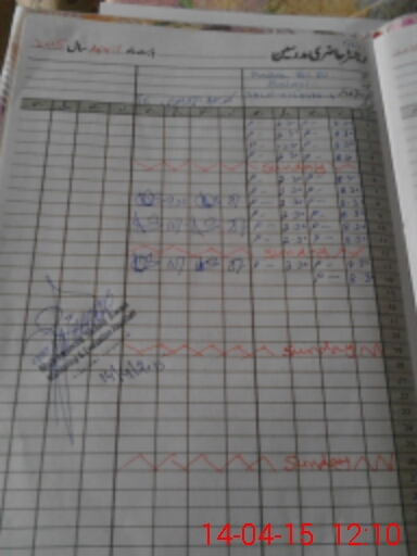 | CNIC | Full Name | Designation | R/C | Absence During Last Calender Month |