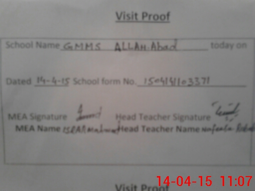 | Attendance Register | Head Teacher | MEA with School | Visit Proof |