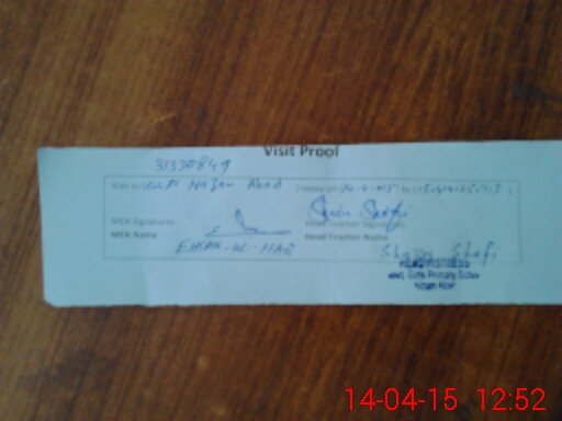 | Attendance Register | Head Teacher | MEA with School | Visit Proof |