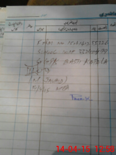 | Name: SH**** AS**** Designation: (School Headmaster's/Headmistress's) ESE Phone/Cell Number: 03**** |