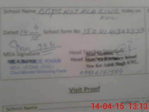 | EMIS Code: 36420351 | Name of School: GGPS KOT ALA SINGH, KHANEWAL | |||
