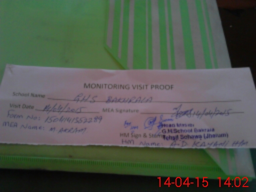 | Attendance Register | Head Teacher | MEA with School | Visit Proof |