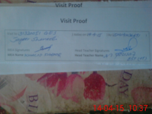 | Attendance Register | Head Teacher | MEA with School | Visit Proof |
