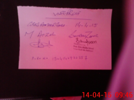 | Name: SA**** ZA**** Designation: (School Headmaster's/Headmistress's) S.S.T(ARTS) Phone/Cell Number: 03**** |