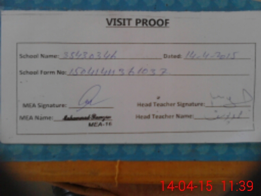 | Attendance Register | Head Teacher | MEA with School | Visit Proof |