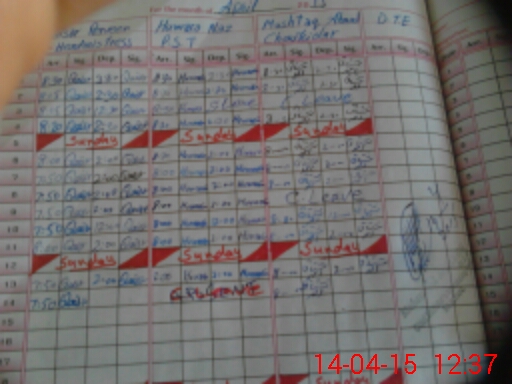 | CNIC | Full Name | Designation | R/C | Absence During Last Calender Month |
