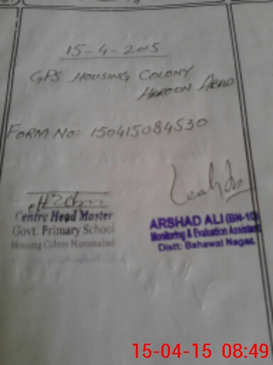 | District: BAHAWALNAGAR | Tehsil: HAROONABAD | Markaz: HND-1-MALE | Level: Primary | |