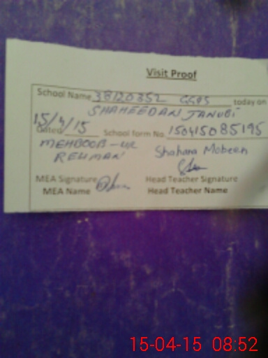 | Attendance Register | Head Teacher | MEA with School | Visit Proof |