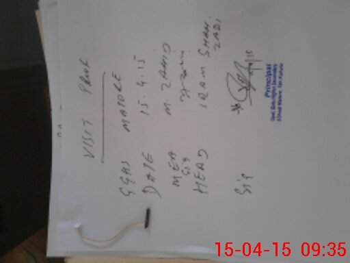 | Monitoring Date: 15-04-2015 | Start Time: 15-04-2015 09:12 AM | End Time: 15-04-2015 09:35 AM | Name of MEA: Sy**** Ha**** Ak**** | |