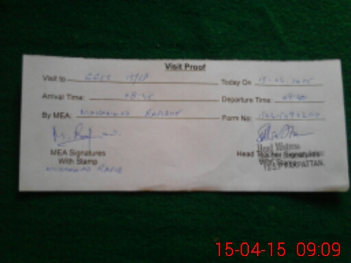 | Remarks (Use Separate Page if Required): Attendance register of teaching and non teaching staff not available due to CTSC head teacher meeting at GHS Urban Area Pakpattan | |||||