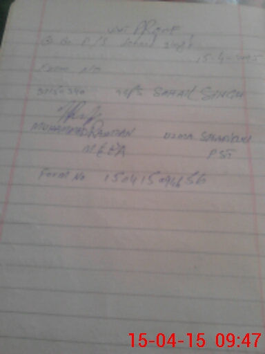 | Monitoring Date: 15-04-2015 | Start Time: 15-04-2015 09:05 AM | End Time: 15-04-2015 09:50 AM | Name of MEA: Mu**** Ra**** BN**** 37 | |