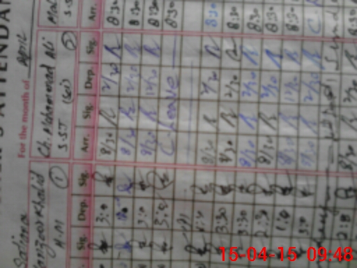 | CNIC | Full Name | Designation | R/C | Absence During Last Calender Month |
