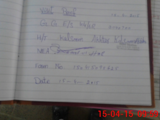 | Monitoring Date: 15-04-2015 | Start Time: 15-04-2015 09:30 AM | End Time: 15-04-2015 10:17 AM | Name of MEA: Za**** BN**** | |