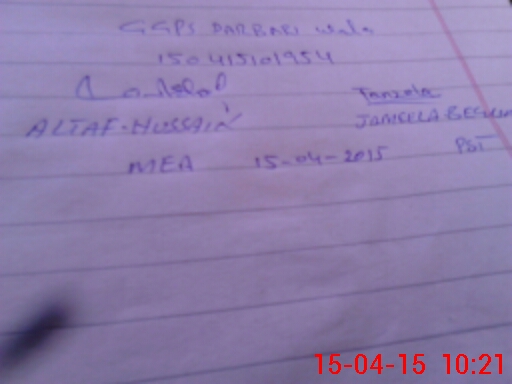 | Monitoring Date: 15-04-2015 | Start Time: 15-04-2015 09:52 AM | End Time: 15-04-2015 10:29 AM | Name of MEA: Al**** Hu**** BN**** | |