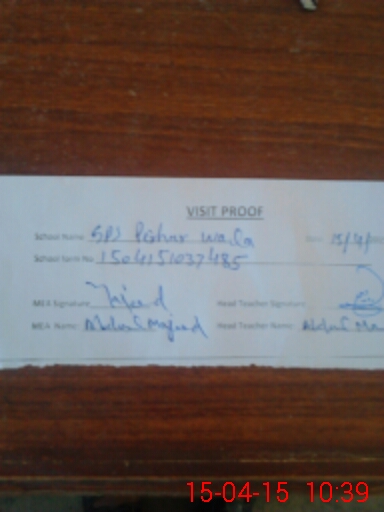 | Attendance Register | Head Teacher | MEA with School | Visit Proof |