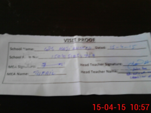 | Attendance Register | Head Teacher | MEA with School | Visit Proof |