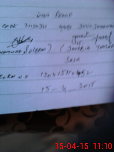 | Monitoring Date: 15-04-2015 | Start Time: 15-04-2015 10:18 AM | End Time: 15-04-2015 11:11 AM | Name of MEA: Mu**** Sa**** BN**** 33 | |