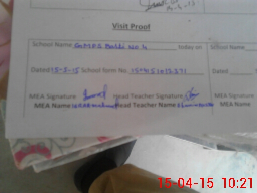 | Attendance Register | Head Teacher | MEA with School | Visit Proof |