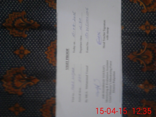 | Name: SH**** AH**** Designation: (School Headmaster's/Headmistress's) EST (GEN) Phone/Cell Number: 03**** |