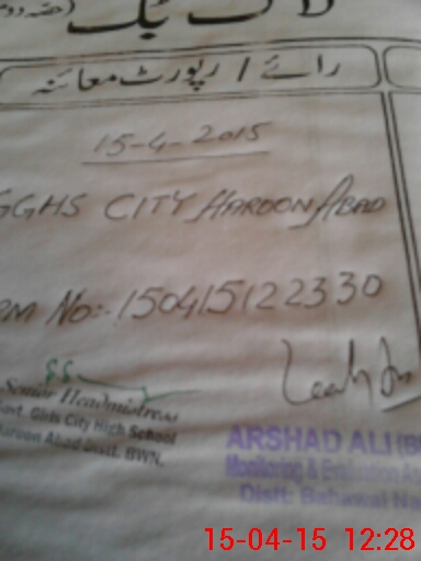 | EMIS Code: 31140023 | Name of School: GGHS CITY HAROON ABAD | |||