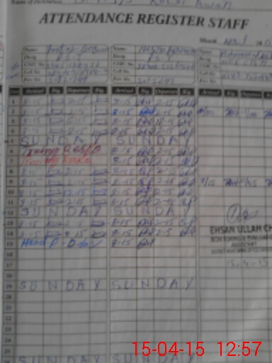 | CNIC | Full Name | Designation | R/C | Absence During Last Calender Month |