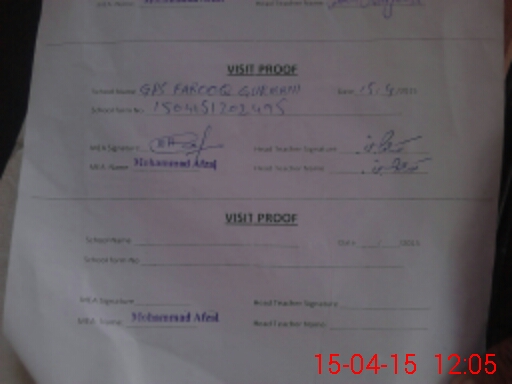 | Attendance Register | Head Teacher | MEA with School | Visit Proof |