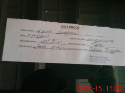 | Attendance Register | Head Teacher | MEA with School | Visit Proof |
