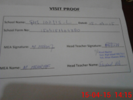 | EMIS Code: 36430012 | Name of School: GHS 102/15-L, MIAN CHUNNU | |||