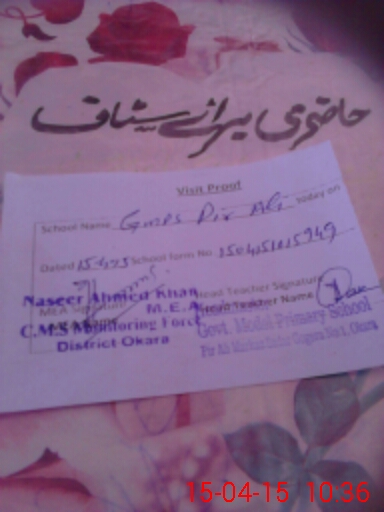 | Attendance Register | Head Teacher | MEA with School | Visit Proof |