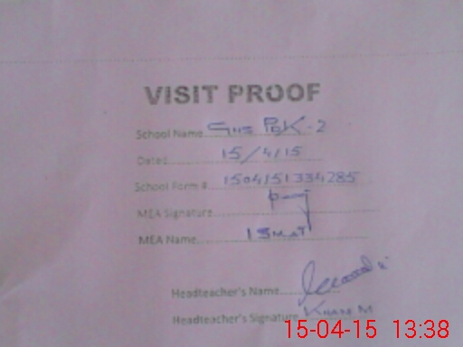 | Attendance Register | Head Teacher | MEA with School | Visit Proof |