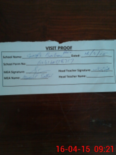 | Attendance Register | Head Teacher | MEA with School | Visit Proof |