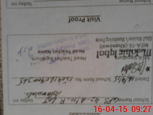 | Monitoring Date: 16-04-2015 | Start Time: 16-04-2015 09:00 AM | End Time: 16-04-2015 09:28 AM | Name of MEA: M.Ta**** Iq**** (S**** | |