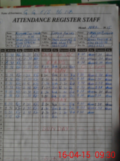 | CNIC | Full Name | Designation | R/C | Absence During Last Calender Month |