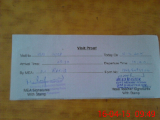 | Attendance Register | Head Teacher | MEA with School | Visit Proof |