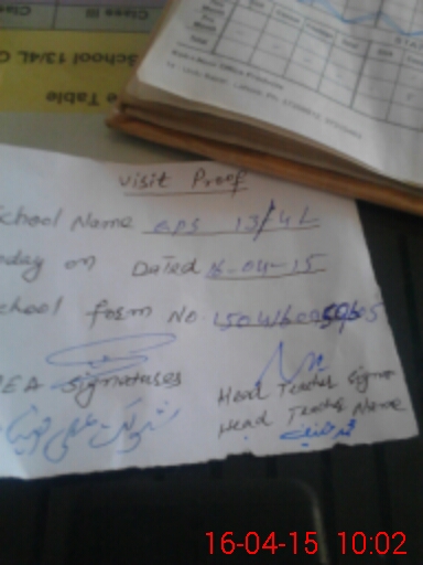 | School Visited by School Health & Nutrition Supervisor (No. of Visits) | 1 | Name1: | Masood Ur Rehman | Name2: | |