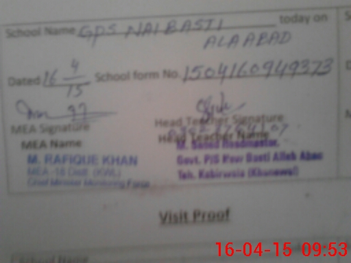 | EMIS Code: 36410543 | Name of School: GPS NAI BASTI ALLAH ABAD, KABIRWALA | |||