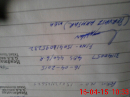 | Monitoring Date: 16-04-2015 | Start Time: 16-04-2015 09:51 AM | End Time: 16-04-2015 10:35 AM | Name of MEA: Pe**** Ak**** BN**** 12 | |